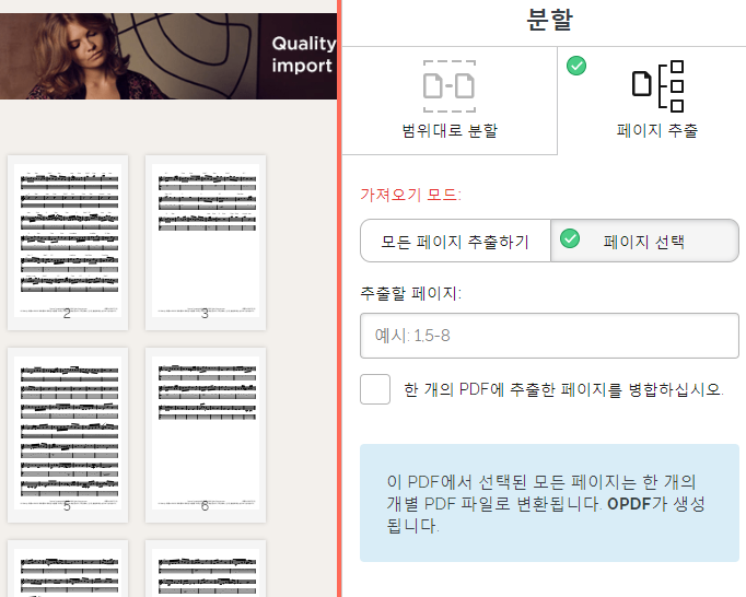 중간에 필요한 페이지만 골라서 하나의 PDF 파일로 만들 수 있어서 편했어요